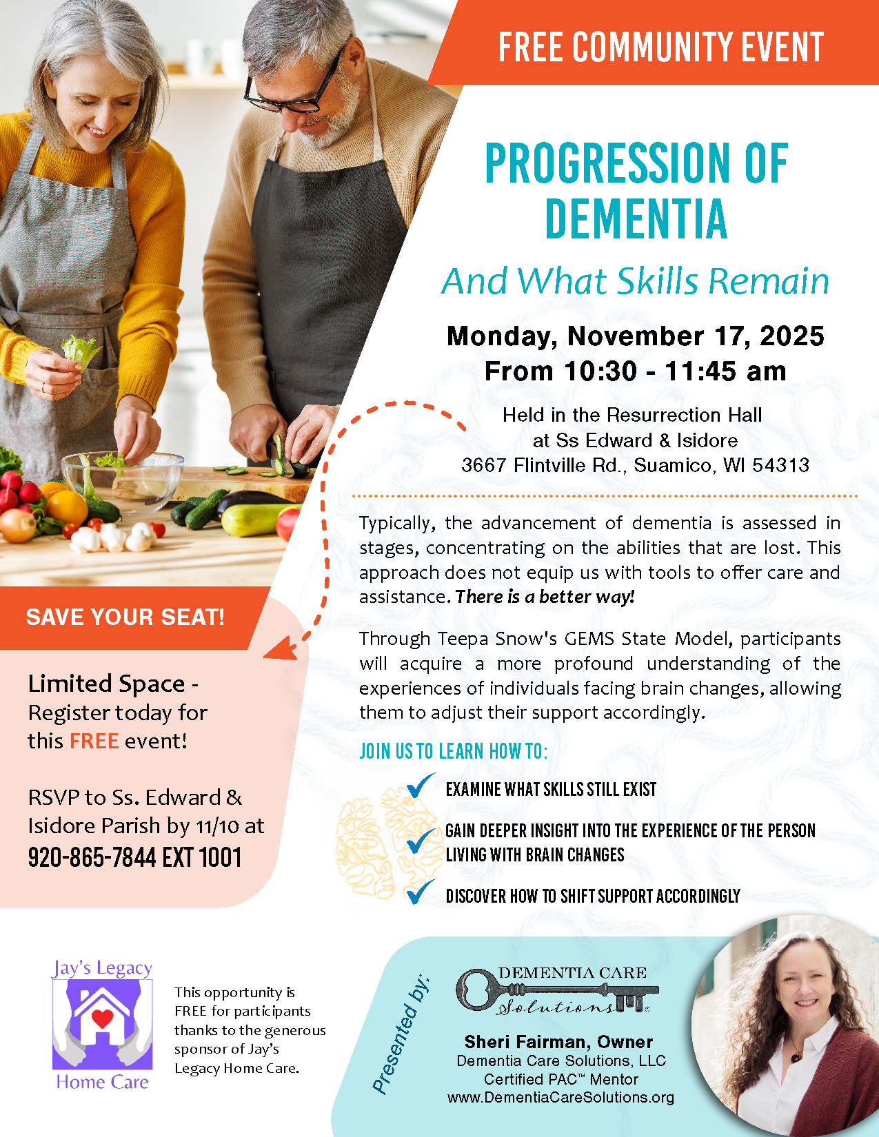 Progression of Dementia - What Skills Remain Monday, Nov 17 nd - 10:30-11:45am Often the progression of dementia is measured in stages that focuses on what skills are lost. This […]